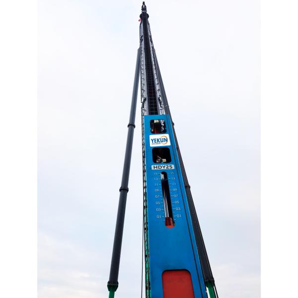The cable has a small cross-sectional area and is lightweight, greatly reducing the labor intensity of workers; HDY25 hydraulic hammer is equipped with Dongfeng Cummins QSZ13-C550 diesel engine, two Rexroth A11VLO260 plunger pumps and one Parker T67DB double blade pump connected in series to form a pump set, providing surging power for construction;